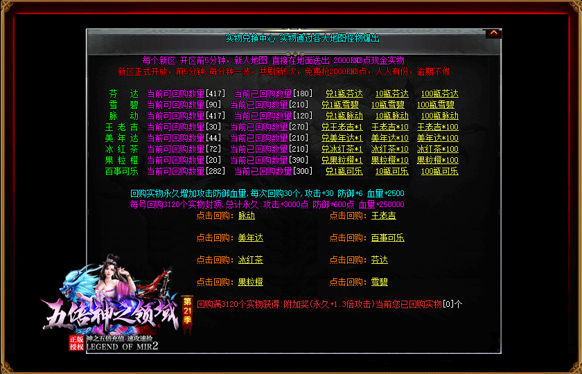 | 增加散人免费玩福利,低级专属装备可以兑换充直积分 |