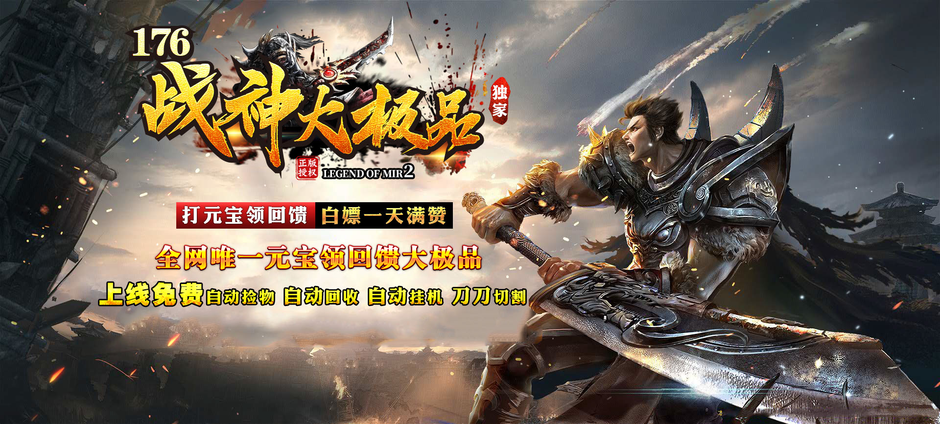上线自动捡物 自动回收 刀刀切割 打元宝领取终极回馈 真正散人大服 屌丝逆袭