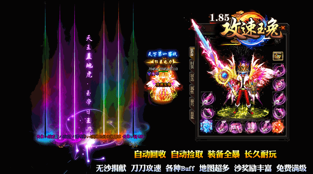 1、本服专为散人玩家打造的良心服、装备全靠打、材料、积分等币全暴、活动超多!