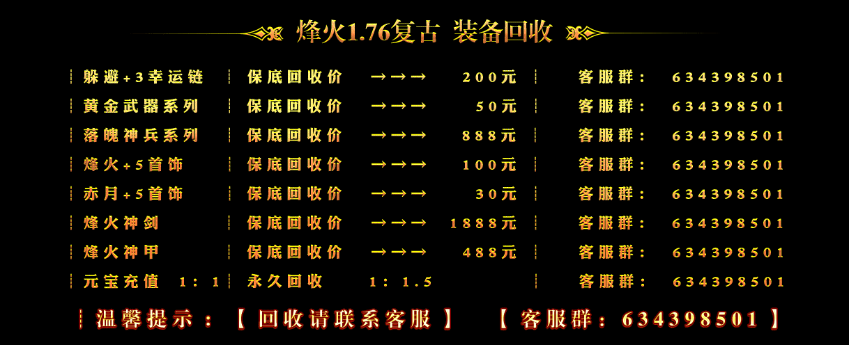 元宝比例1:1官方永久回收1:1.5,装备保值官方回收!