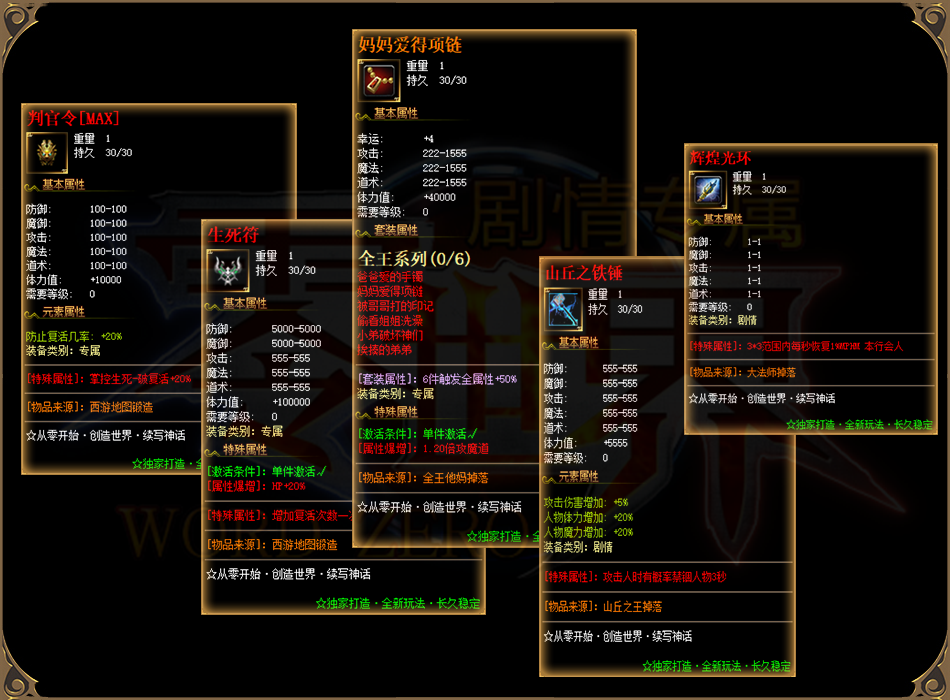 本服长久耐玩!非市面一般版本!装备多样化,专属装备众多,各位剧情任务云集。