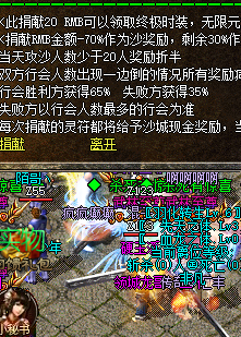 沙巴克 以现金红包形式发放,捐献20米70%作为沙城奖励